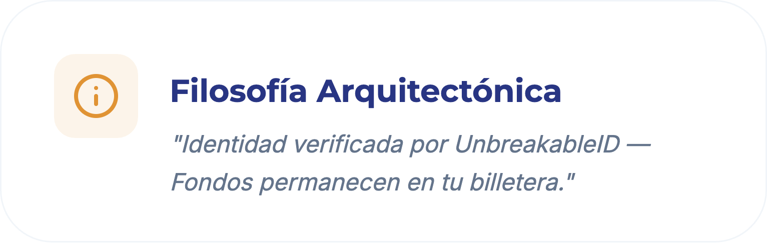 Capa de confianza: identidad del usuario verificada a través de UnbreakableID (credenciales vinculadas a BNS, cumplimiento de KYC).